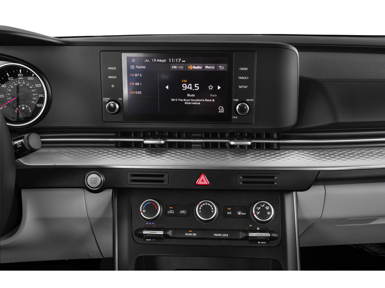 - Radio w/Seek-Scan, Clock, Speed Compensated Volume Control, Steering Wheel Controls, Voice Activation and UVO3 External Memory Control