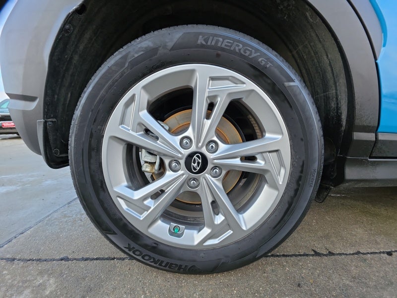 2023 Hyundai Kona SEL — One Owner • 30,193 miles • Teal exterior Clean, well-equipped compact SUV with confident all-wheel drive and modern safety tech. This Kona SEL pairs a responsive 2.0L I4 with the Intelligent Variable transmission and SHIFTRONIC drive mode select for composed daily driving and added control when road conditions change. The automatic full-time AWD system includes brake-actuated limited slip, hill-hold and hill-descent features for sure-footed traction. Comfort and convenience - Cloth seating, 60/40 fold-flat rear bench, front and rear center armrests, and full carpet for comfortable daily use - Manual tilt/telescoping steering column, cruise control with steering-wheel controls, illuminated glove box, cargo space lights and rigid cargo cover - Compact/steel spare inside under cargo with tire size 215/55R17 and 17" alloy wheels with silver accents Technology and infotainment - 1 LCD monitor up front, 6-speaker audio, turn-by-turn navigation directions, digital/analog instrument appearance and driver information center - Back-up camera, remote releases for mechanical fuel access, delayed accessory power, and full interior lighting features Exterior and practicality - Eye-catching teal paint with lip spoiler, deep-tinted glass, body-colored bumpers and mirrors (power heated w/turn signal), black bodyside cladding and silver-accented wheels - Liftgate rear cargo access, fixed rear window wiper/defroster, full galvanized steel panels and a 13.2-gallon fuel tank Safety - Comprehensive safety suite including Forward Collision-Avoidance Assist w/pedestrian detection, Collision Mitigation-Front, Blind-Spot Collision-Avoidance Assist, Rear Cross-Traffic Collision-Avoidance Assist, Lane Following Assist, driver monitoring-alert, curtain and side airbags, and tire pressure monitoring One-owner vehicle with 30,193 miles — a practical, feature-packed Kona SEL that blends safety, comfort, and AWD capability for year-round confidence. Contact us to arrange a test drive. This vehicle is a Hyundai Certified Pr